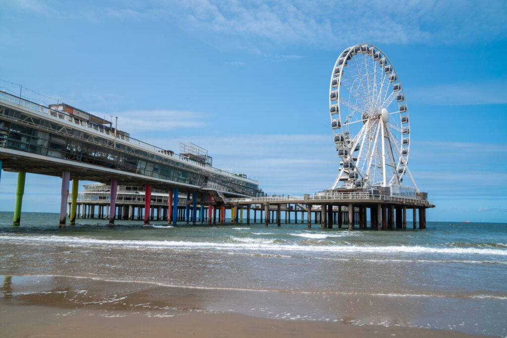 Scheveningen strand: Zand, zee, een reuzenrad op de pier en SEA LIFE aquarium.